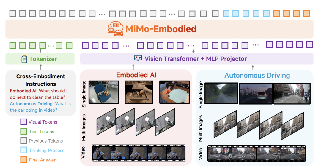 如上图所示,MiMo-Embodied架构由以下三个部分组成: