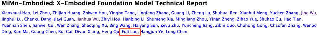 在这篇出自MiMo团队(主打空间智能)的研究中,罗福莉作为团队负责人担任核心作者,小米智驾团队首席科学家陈龙则作为项目负责人。