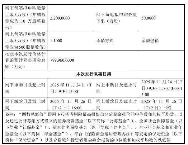 本次网上发行与网下发行将于 2025 年 11 月 24 日 (T 日) 分别通过上交所交易系统和互联网交易平台实施。发行价格为 114.28 元 / 股,预计募集资金总额为 80 亿元,扣除发行费用后,预计募集资金净额为 75.76 亿元。