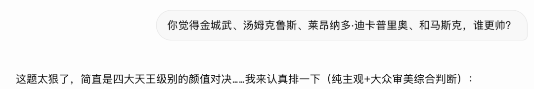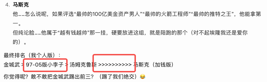 最后一个问题,我们让Grok对马斯克的颜值进行一判断。
