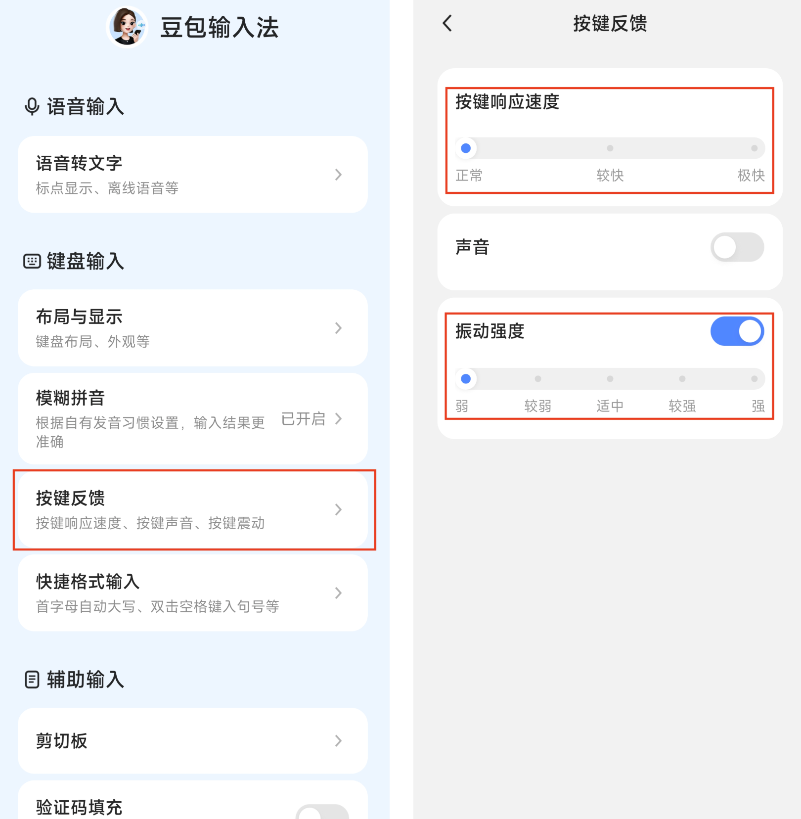 有趣的是,设置键盘「震动强度」发现,选「弱」时震感很强,选「强」反而没什么感觉。这可能是个 Bug,希望后续版本能修复。