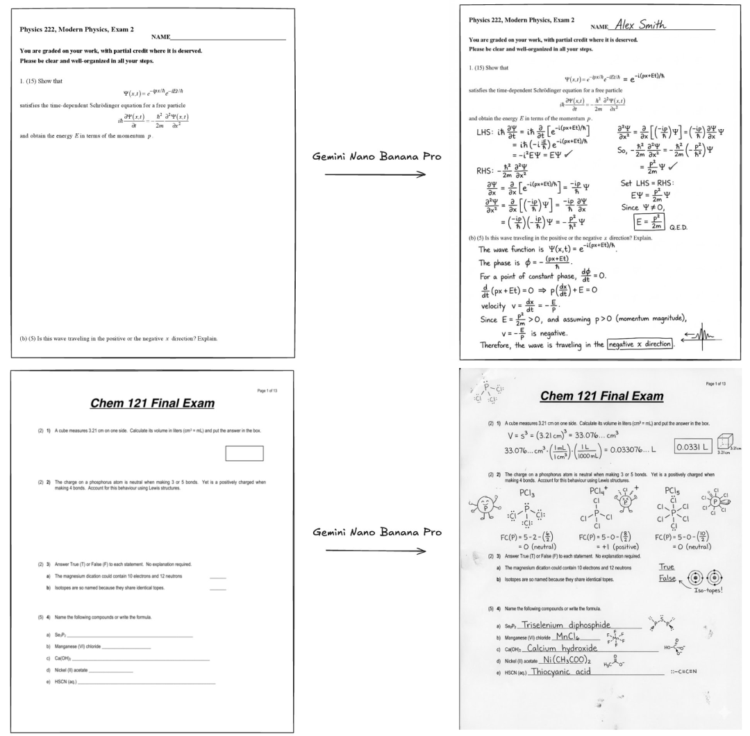 有网友在玩的过程中还发现,给Nano Banana看一道手写的题,它还会模仿真人笔迹,笔记本的版式各方面的质感都高度还原: