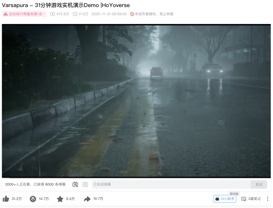 截至发稿,《Varsapura》实机演示Demo在B站播放量突破了470万。蔡浩宇重新出山,这次会在米哈游复刻下一个《原神》吗?