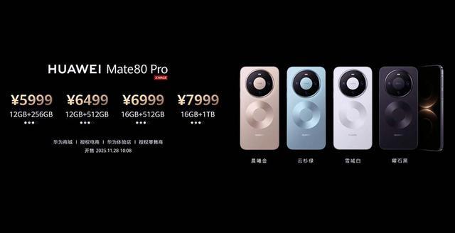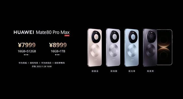 价格方面,华为Mate 80起售价4699元,Mate 80 Pro起售价5999元,Mate 80 Pro Max起售价7999元,Mate 80 RS非凡大师版起售价11999元,折叠屏Mate X7起售价12999元,典藏版顶配售价15999元。