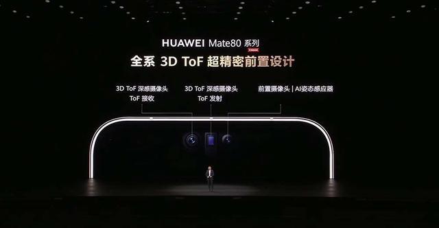 Mate 80这次全系列搭载了前置3D ToF模块,包括两颗深感摄像头,支持AI姿态感应。