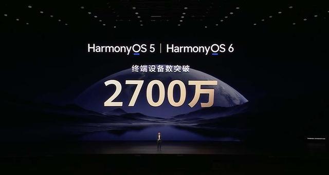 目前搭载鸿蒙5和鸿蒙6两个“纯血”鸿蒙版本的终端设备数量已经突破了2700万台。