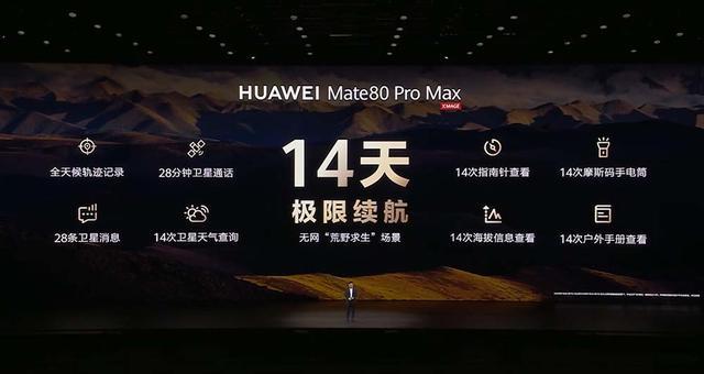 在续航方面,华为首发了“户外探索模式”,支持36小时的息屏轨迹导航,Mate 80 Pro Max在极限续航模式下,支持14天续航,在这一过程中仍然可以进行全天候轨迹记录、28分钟卫星通话等功能。