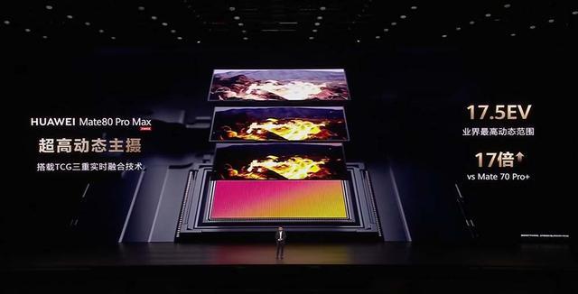 Pro Max版的主摄据称实现了业内最高的动态范围,达到了17.5EV,相比Mate 70 Pro+提升了17倍。这一主摄的传感器支持TCG三重实时融合技术。