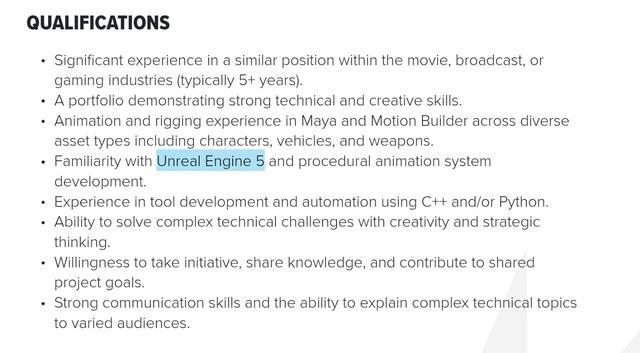 多个职位描述中明确要求应聘者具备虚幻引擎 5(Unreal Engine 5)的使用经验,这证实了 CDPR 未来的项目将从 RED 引擎全面转向 UE5 开发。同时,“程序化生成”(procedural generation)技术的提及也尤为引人关注。