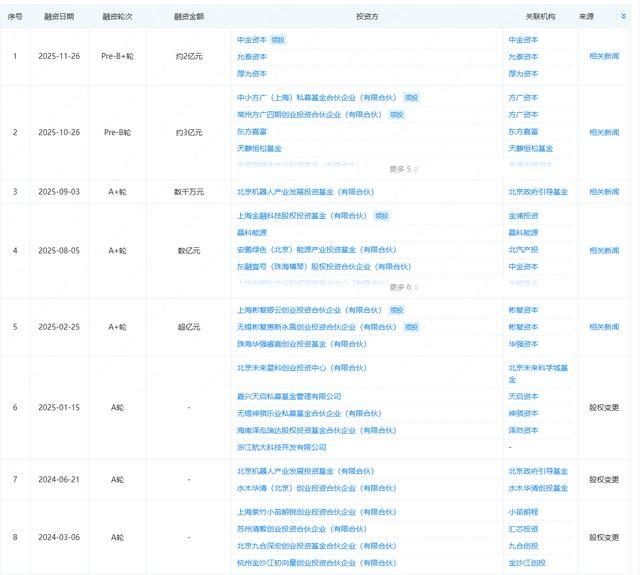 成立于2023年9月的松延动力,今年以来融资密集,已接连完成5轮融资。不到一个月前,其刚完成约3亿元Pre-B轮融资,由方广资本领投,祥峰投资、中车转型升级基金、聚合资本、东方嘉富等跟投。