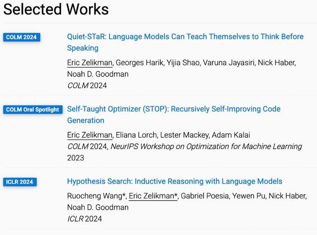 泽利克曼的论文成果节选(来源:Eric Zelikman个人网站)