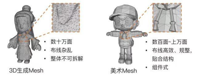 过去的3D生成算法虽能完成几何建模,但普遍存在面数过高、布线紊乱等问题,生成结果与美术制作的专业模型存在明显差距,难以用于游戏引擎、动画生产或VR实时渲染等严苛场景。