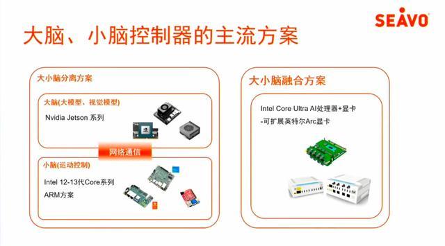 主流的具身人形技术采用的是大小脑分离方案:大脑主要采用英伟达的方案;小脑则依托英特尔的酷睿平台或者Arm架构的方案,用于运动控制功能。