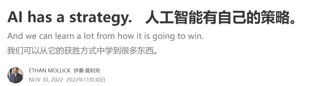 就在ChatGPT刚上线前夕,Ethan Mollick写下了他在Substack上的第一篇GPT-3测试文章。