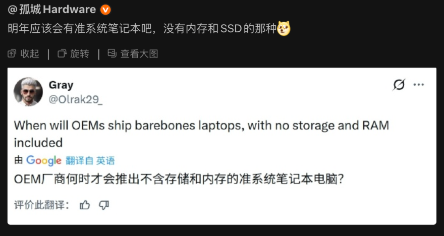 或许等到明后年,我们就能见到「内存条和硬盘自备」的准系统笔记本上架了: