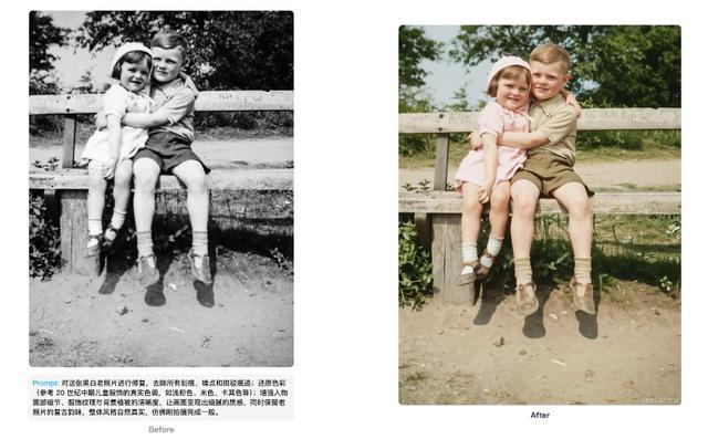 再比如,Emu3.5还可以修复老照片,还原老照片本来的颜色和质感: