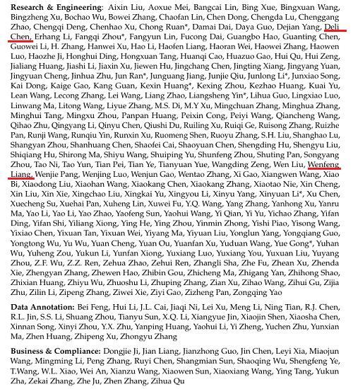 值得一提的是,在技术报告的作者名单里,我们能看到不少熟悉的名字,比如DeepSeek创始人兼CEO梁文锋、前段时间代表DeepSeek在乌镇世界互联网大会上发声的研究员陈德里等。