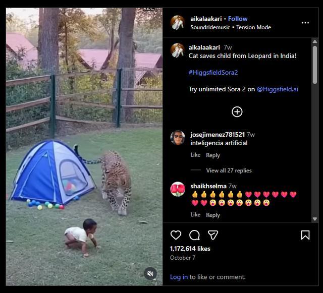 “它们反映了不真实的物种特性、行为、栖息地或物种间的关系。例如,我们看到捕食者和猎物一起玩耍。这些视频向我们展示的是具有人类行为的动物,这与现实相去甚远,”何塞・格雷罗解释说,“那段孩子在院子里玩耍、画面中有豹子的视频,会破坏这类物种的保护工作,因为在那种情况下,你根本不可能遇到豹子。”