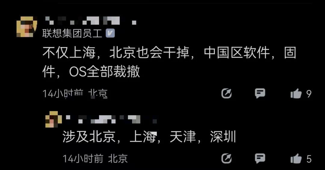 有人透露,不仅上海,“北京也会干掉”,中国区软件、固件和OS全部裁撤;涉及北京、上海、天津和深圳。