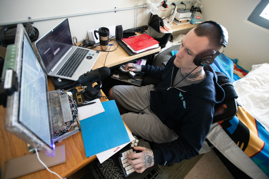 是的,你没听错,坐在牢房里拿着笔记本打工挣钱,甚至可以和外面公司视频会议。Preston就是第一批参与者。