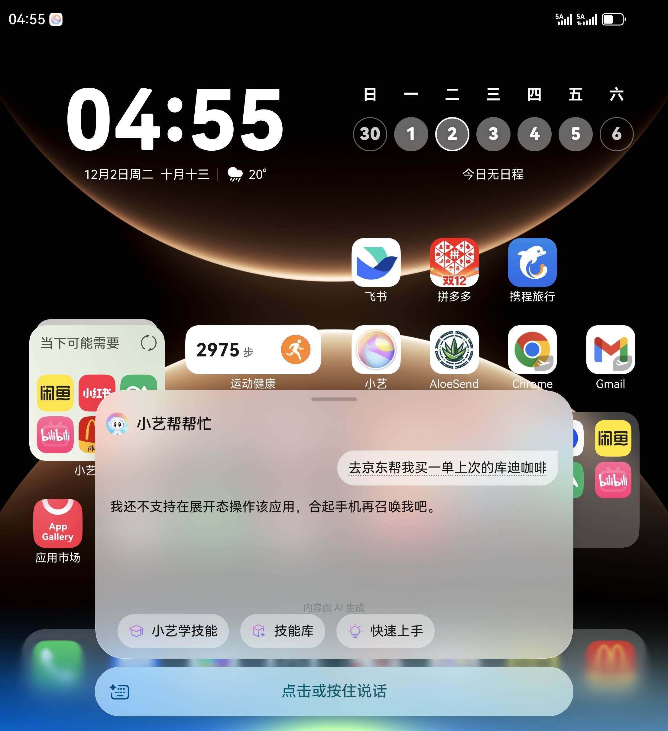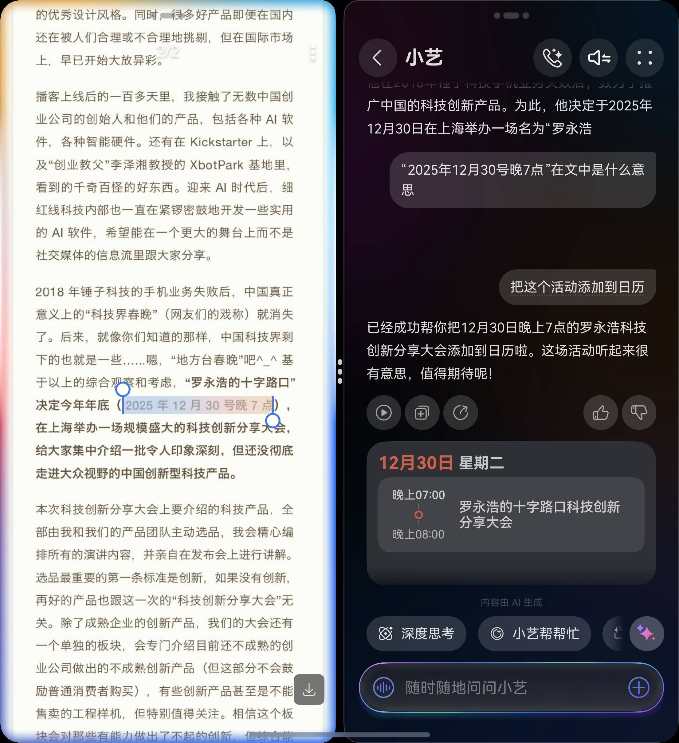 更要命的是,由于这是一个内嵌在小艺内部的功能,这导致它的唤醒词不是非常的清晰,经常出现小艺不给你帮忙,还在一个劲帮你用 AI 解答的情况: