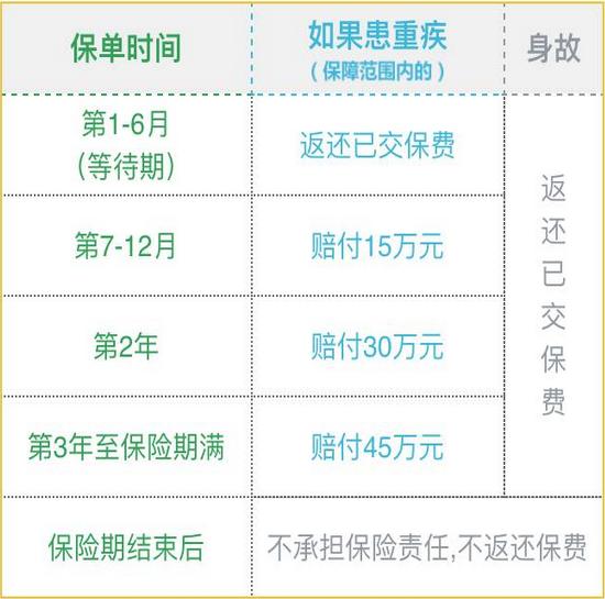 被保人0-17周岁:基本保额最高为15万元,则第三年及以后的保额变为最高45万元。