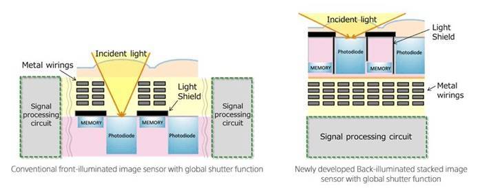 为了解决这个问题,索尼研发了堆栈式传感器,将原本在一块晶圆上打造的像素区域与处理回路分别打造,再重叠堆放,以获取更高的数据传输速度,但它的问题在于造价极贵,往往用于 a9 系列这样的旗舰速度机和 a1 系列这类旗舰全能产品。