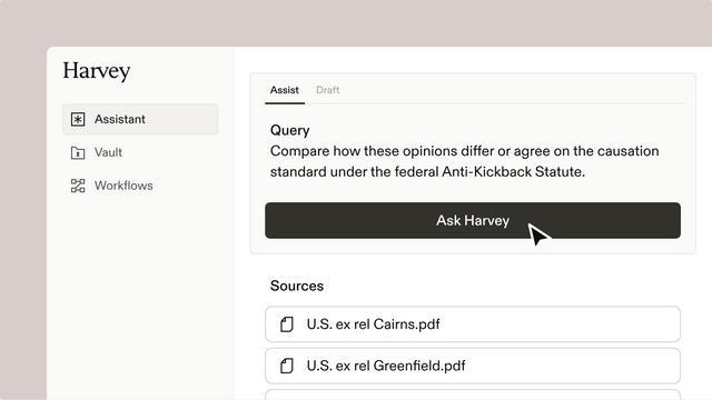 Harvey的AI助理功能(图源:Harvey)