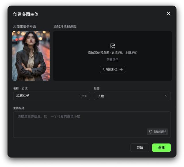 根据介绍,“主体库”支持一键复用、自由组合,视频 O1 支持至多参考 7 个主体、图片 O1 支持至多参考 10 个主体。当用户只提供了一张主要参考图时,AI 也可以帮助用户自动扩展更多视角,并智能生成主体描述。