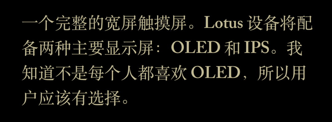Lotus Diplomat同时拥有,OLED和IPS LCD两个版本,用户可以自由选择用啥材质。