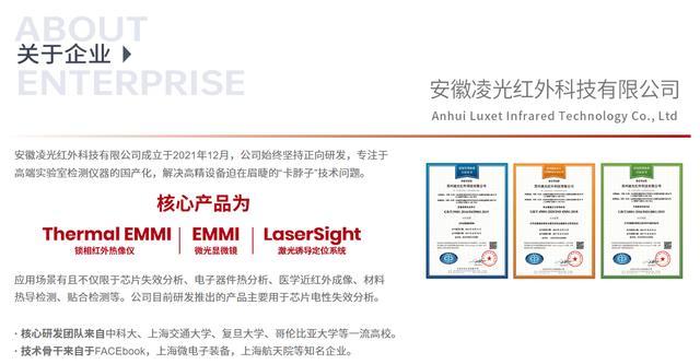 IT之家查询获悉,凌光红外(安徽凌光红外科技有限公司)成立于 2021 年 12 月,专注于高端实验室检测仪器的国产化,解决高精设备迫在眉睫的“卡脖子”技术问题,核心产品包括:锁相红外热像仪、微光显微镜、激光诱导定位系统。