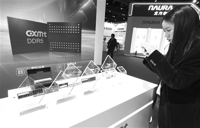 第二十二届中国国际半导体博览会上,观众参观长鑫存储展台。郭海鹏/视觉中国