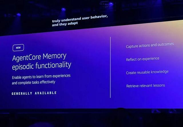 Amazon Bedrock AgentCore智能体平台推出多项创新:策略功能支持团队为智能体的工具使用设定边界,评估功能帮助团队了解智能体在实际场景中的表现,情景记忆功能让智能体能够从经验中学习并持续优化。
