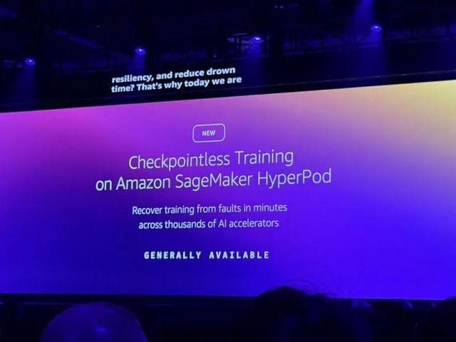 Amazon SageMaker HyperPod新增的无检查点训练功能则实现了大规模、低成本的训练,整体目标是最大化客户在生产环境中这些工作负载的价值和投资回报率(ROI)。