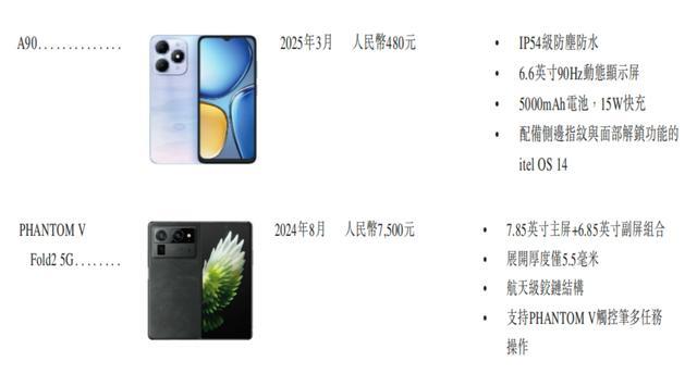 在智能手机上,该公司推出了三款智能手机品牌:面向中高端消费者的TECNO、面向年轻消费者的Infinix以及面向大众消费者的itel。其中,2025年3月推出的itel A90机型仅需480元,价格最高的TECNO折叠机型PHANTOM V Fold2 5G价格为7500元。