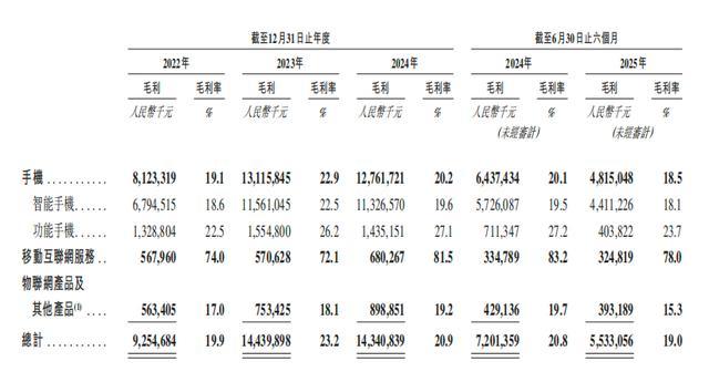 2022年、2023年、2024年、2025年1-6月,传音控股的毛利率分别为19.9%、23.2%、20.9%、19.0%。据招股书,近期毛利率下降的原因主要是新品发布时间影响消费者行为、功能手机价格下调和用户对功能手机需求减少等。