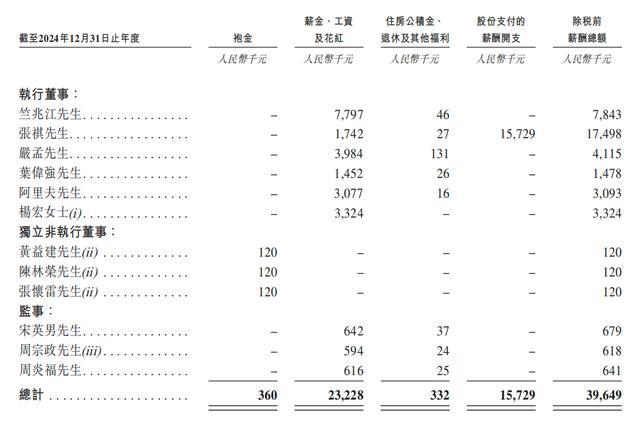 2024年,竺兆江的薪资为784.3万元,其董事及监事的薪酬如下: