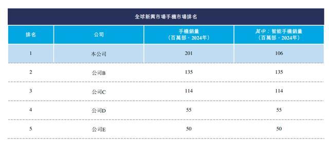 在传音控股深耕的非洲、新兴亚太市场、拉美、中东、中欧及东欧等新兴市场,根据沙利文数据,按照2024年手机销量计算,其已经成为全球第一手机厂商、全球第三智能手机厂商,排名前二的为三星、小米。