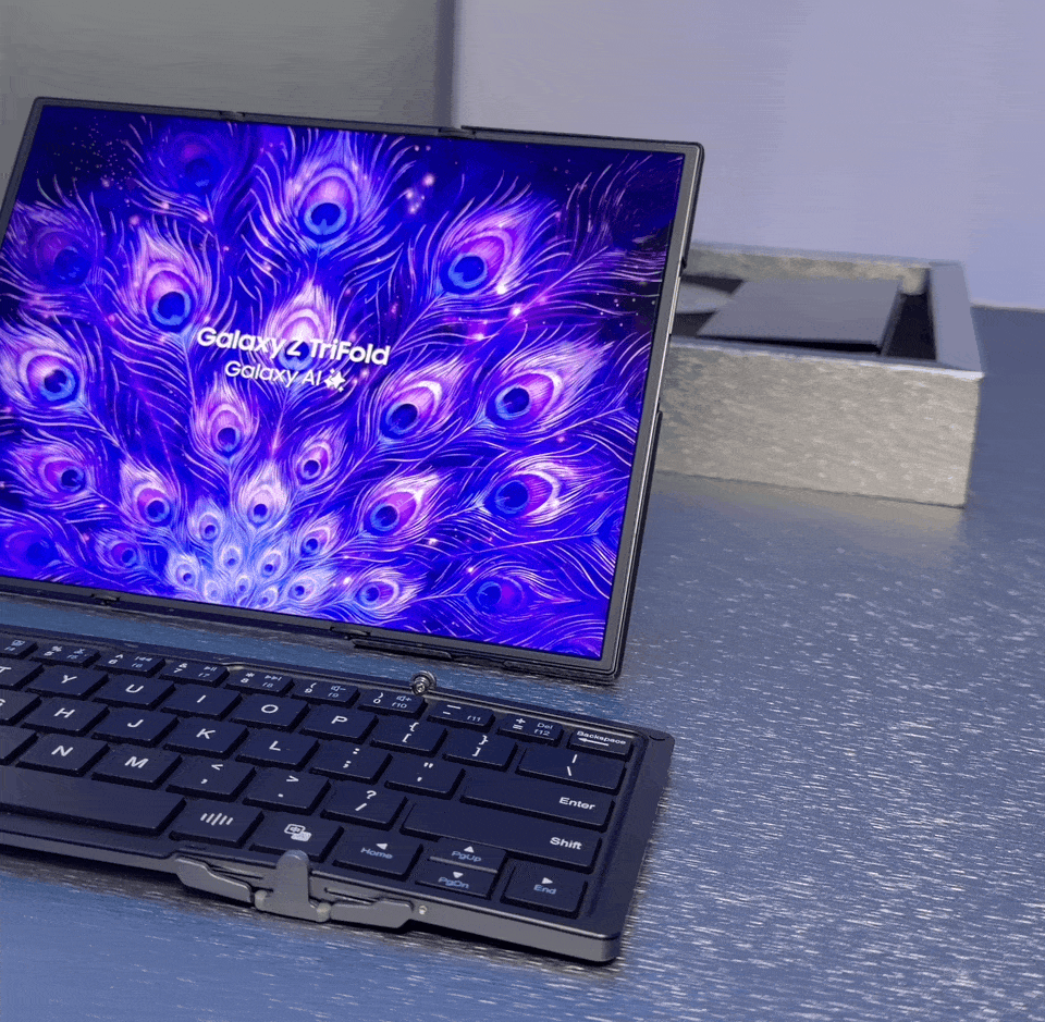 这时,只需要搭配一套蓝牙键鼠,三星 Galaxy Z TriFold 就可以直接变身一台小电脑。