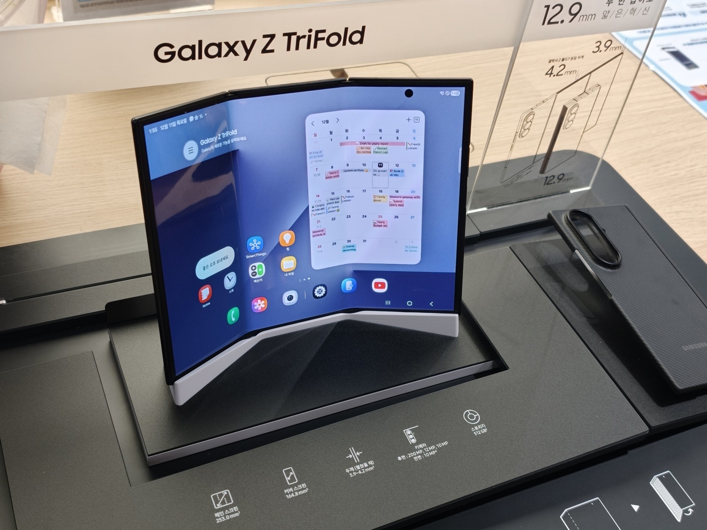 三星 Galaxy Z TriFold 配备了一块分辨率 2160 x 1584 的 10 英寸 Dynamic AMOLED 2X 显示屏,支持 120Hz 自适应刷新率,从而保证了作为显示器使用时的画面流畅度。