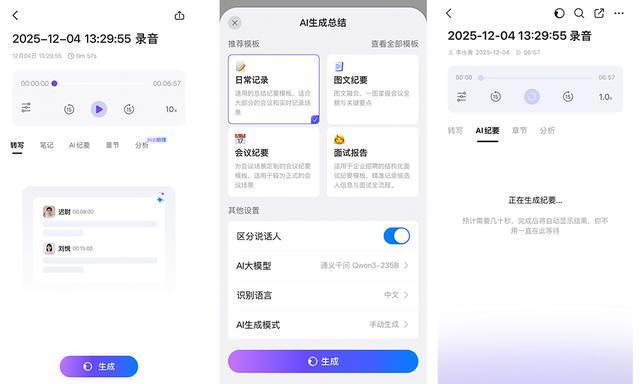 一、录音转写与AI总结:远距嘈杂环境拾音清晰,千问DeepSeek加持