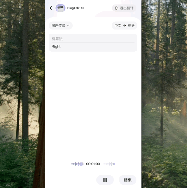 值得一提的是,DingTalk A1还能实时翻译和多语种互译,我在一场中文会议线上直播进行了体验。