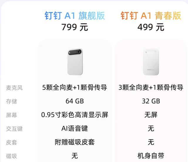 DingTalk A1旗舰版与青春版配置对比(图源:钉钉黑板报)