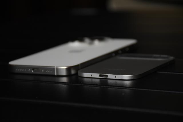 DingTalk A1(右)与iPhone 15 Pro(左)厚度对比(图源:智东西)