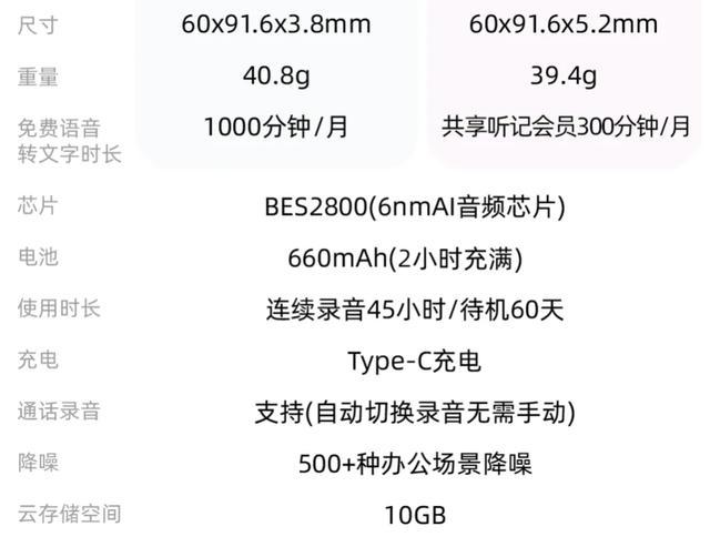 6nm低功耗AI音频芯片,让语音数据能够更快处理;6个麦克风配置,能够实现8m超长距离拾音,大型会议、讲座、电话会议等场景下拥有更好的录音效果;超越市面主流产品的660mA大电池,能够实现45小时连续录音,待机时长达到60天;64G本地存储,减少存储空间焦虑。