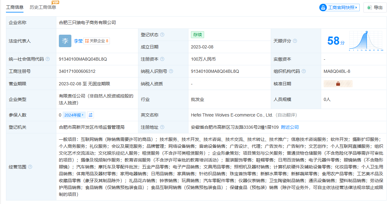 三只羊旗下三只狼电商公司高管变动 于天奇卸任 凤凰网科技讯 12月12日,天眼查App信息显示,合肥三只狼电子商务有限公司于近日发生工商变更。原法定代表人、执行董事兼经理于天奇卸任全部职务,改由李莹接任法定代表人并担任董事。 该公司成立于2023年2月,注册资本为100万人民币。其经营范围涵盖互联网销售、信息技术咨询服务、软件开发等。股权穿透信息显示,该公司由合肥三只羊网络科技有限公司全资持股。 Published by 风君子 独自遨游何稽首 揭天掀地慰生平 View all posts by 风君子