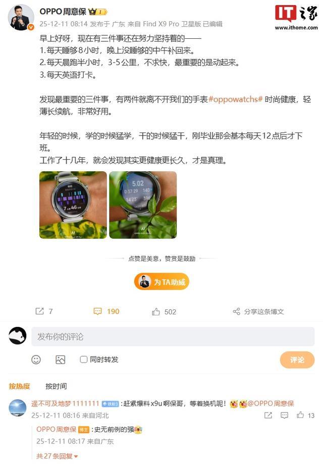 IT之家 12 月 14 日消息,OPPO Find 系列产品负责人周意保本周与网友互动时确认了 Find X9 Ultra 新机的存在:有网友让周意保“赶紧爆料”Find X9 Ultra,周意保直接回复称:“史无前例的强。”
