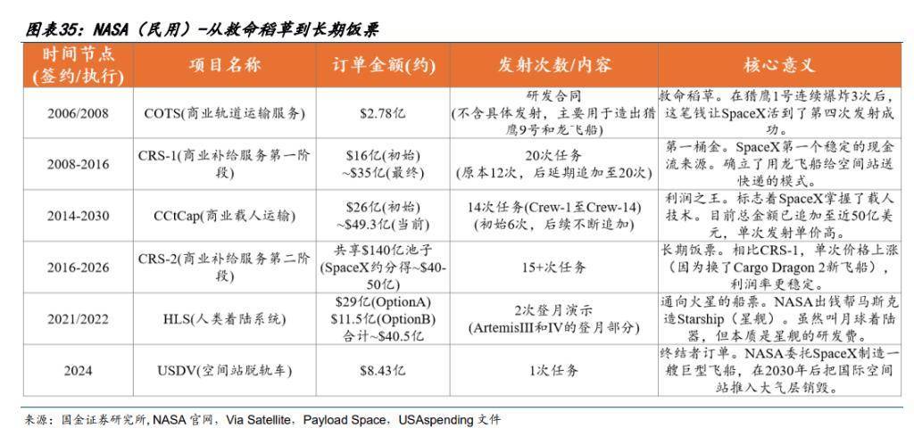 SpaceX的第三重护城河,是其与美国政府之间超越单纯买卖的“深度战略共生”关系。报告指出,NASA和国防部(DoD)不仅是其最大客户,更是其早期生存和技术迭代的资助者。