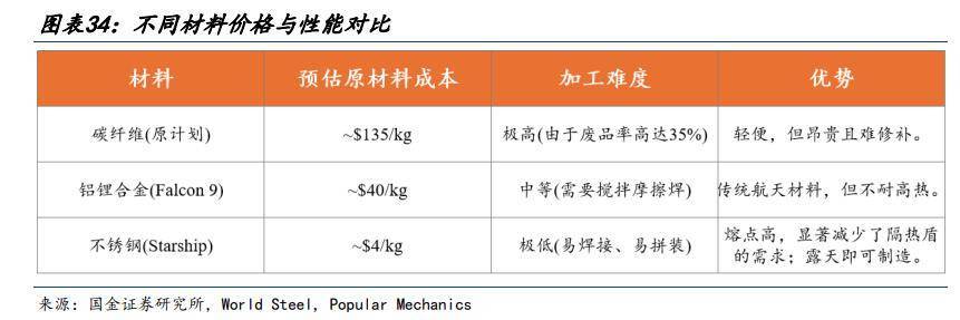 在制造技术创新方面,报告特别强调了SpaceX在星舰项目上的“颠覆性决策”——放弃昂贵的碳纤维,转而使用304L系列不锈钢。