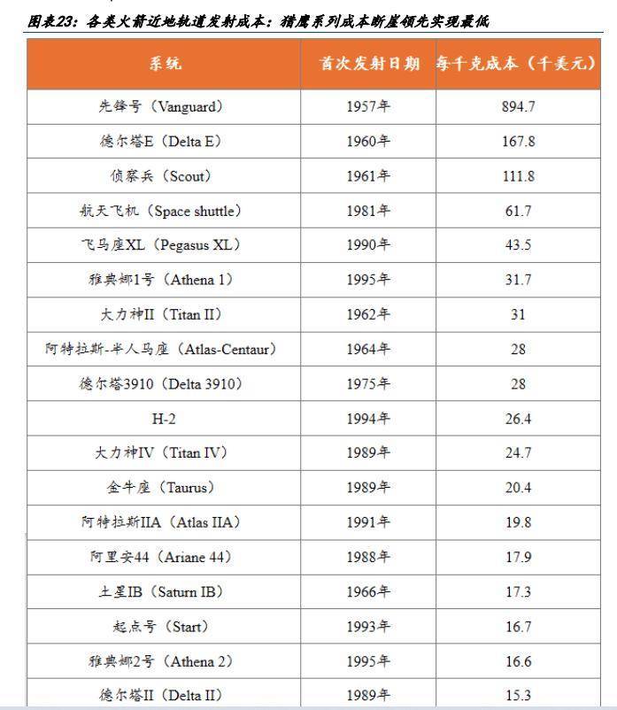 国金证券报告指出,在SpaceX崛起前,全球发射市场由国家主导的企业把持,遵循“成本加成”合同模式,承包商缺乏控制成本的动力。报告援引数据对比,NASA航天飞机将载荷送入近地轨道的成本约为每千克54,500美元,而SpaceX的猎鹰9号则将这一数字降至每千克2,720美元,降幅近20倍。